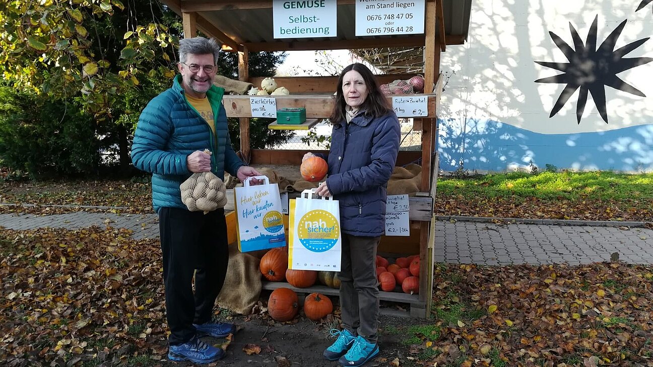 - Trautmannsdorf/Leitha: Edeltraud Pitnauer und Alois Schwarz am ersten Gemüse-Selbstbedienungsstand der Familie Laa in Trautmannsdorf
